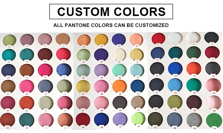 | Colors | Black, White, Beige, Brown, Red, Green, Blue, Cream, Burgundy, Heather Grey, Baby Blue, Yellow, Camel, Oatmeal, Customized |