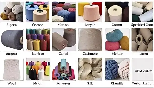 More than 1000 kinds of yarn are available, such as 100% cotton,cotton acrylic, cotton viscose, Cashmere, wool, merino wool, lambs wool ,mohair, alpaca, angora, polyester, spandex and their mixed yarn, Silk, linen, and so on. Based on your design, we’ll recommend premium and suitable yarn material for your reference. We can provide